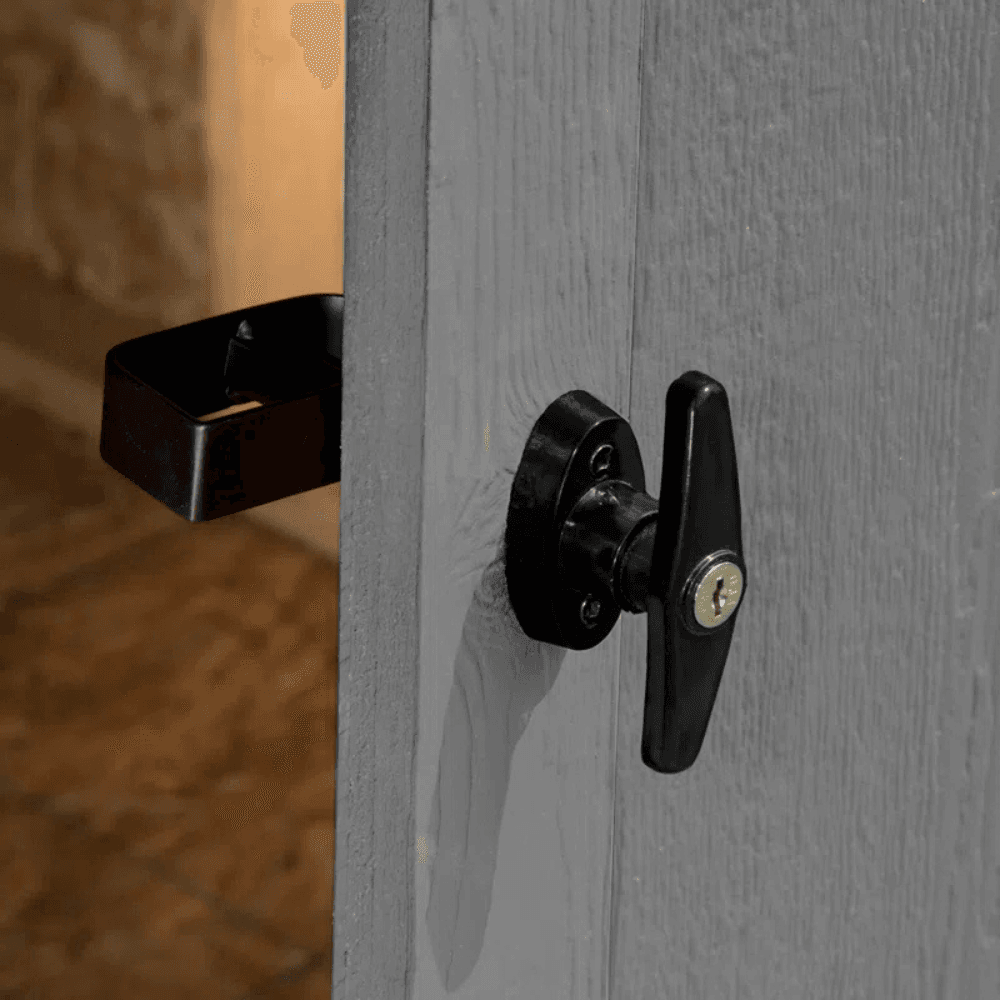 - Wide door opening provides easy access for large items like mowers, ladders, and outdoor furniture.